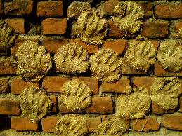 She pointed to a long, brick wall, dotted with pancake-like blobs.
